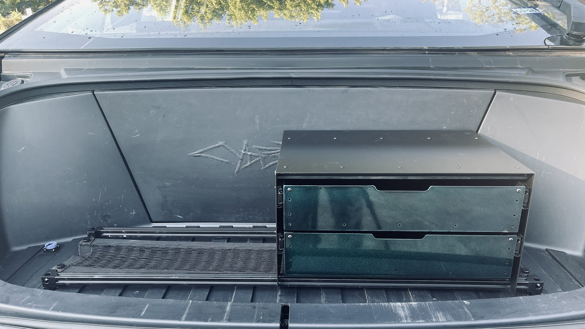 Retains Factory Cargo Net: Designed so the stock Cybertruck cargo net still fits beside the drawers — perfect for soft gear, jackets, or cables.