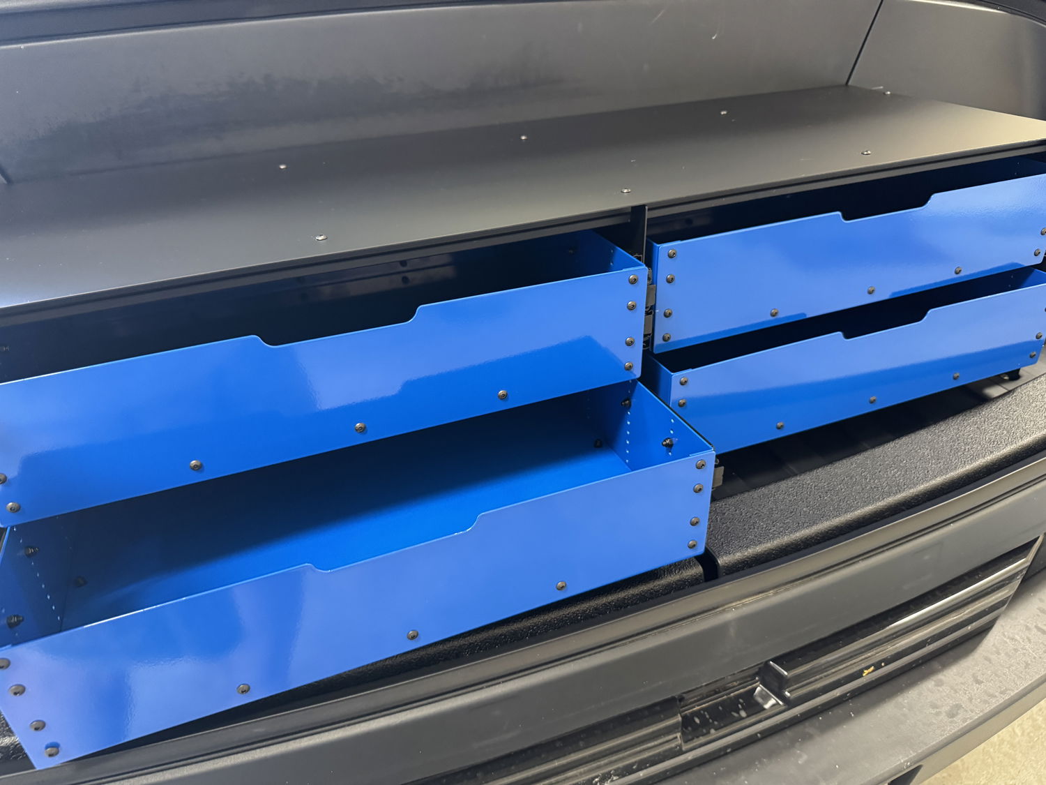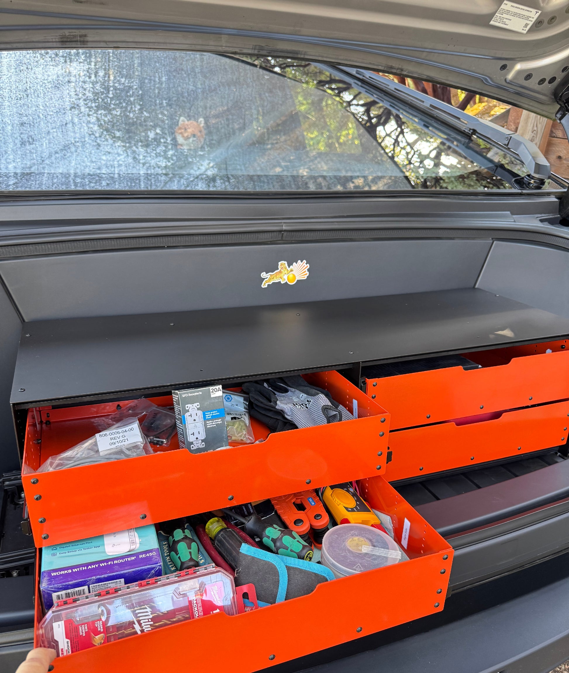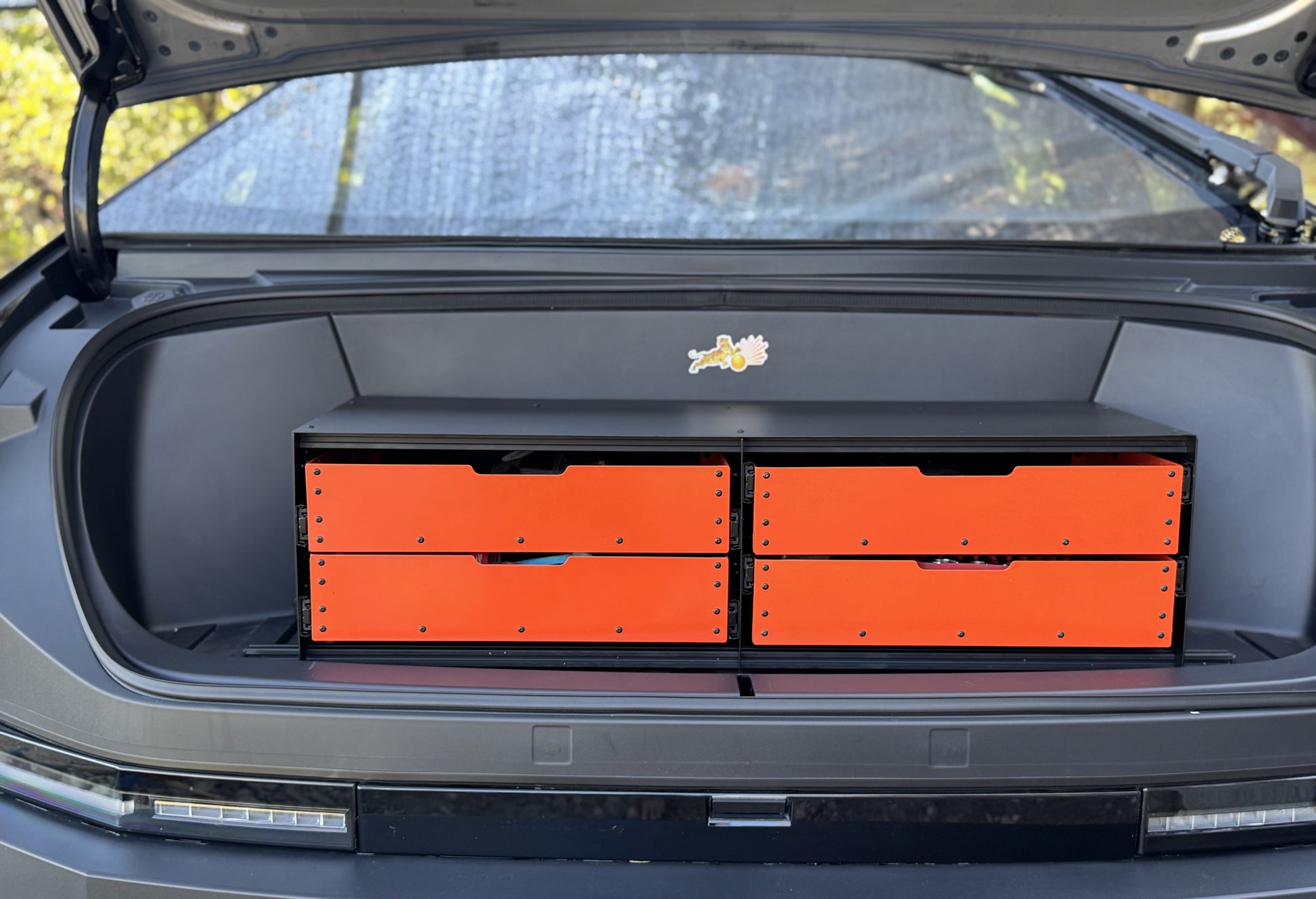 Grab‑and‑go convenience: whether you’re stowing tools, adventure gear or groceries, the Frunk Kit Lite keeps frequently used items within easy reach. Drawers slide smoothly on steel rails, and the front access panel folds down for quick retrieval without removing the entire unit. No more rummaging around or unloading the frunk to find what you need.